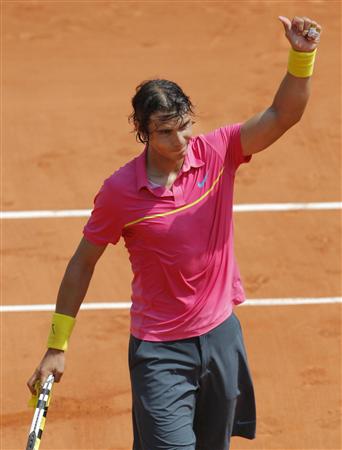 前紹介したラケットを使っているラファエル・ナダルが全仏テニスで29連勝して単独トップになったらしいです。スゴいっすね!!写真は昨日の試合です↓